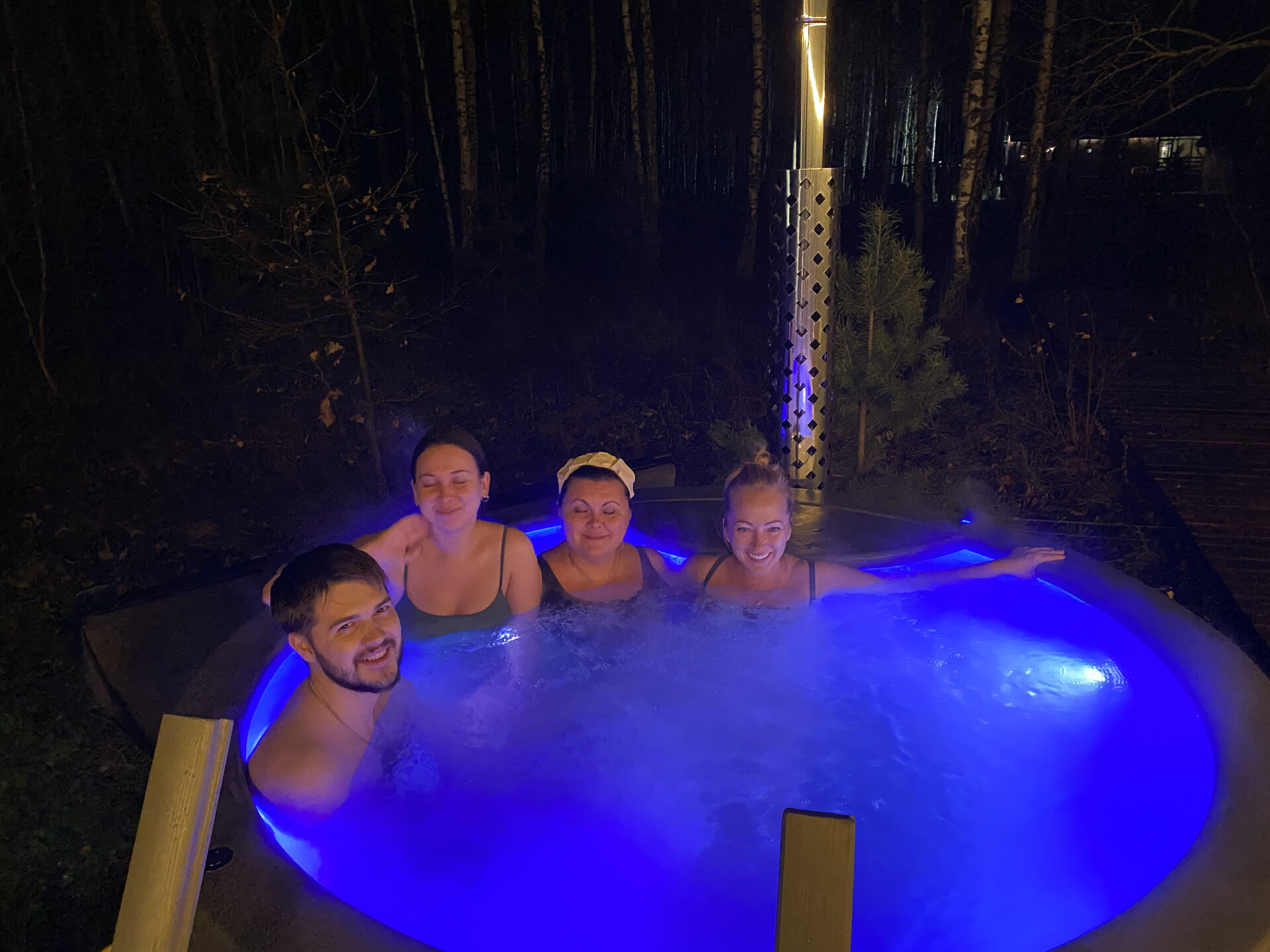 Всепогодная купель - джакузи, вместимость до 6 человек, диаметр 204 см. Гидромассаж, хромотерапия, подсветка.