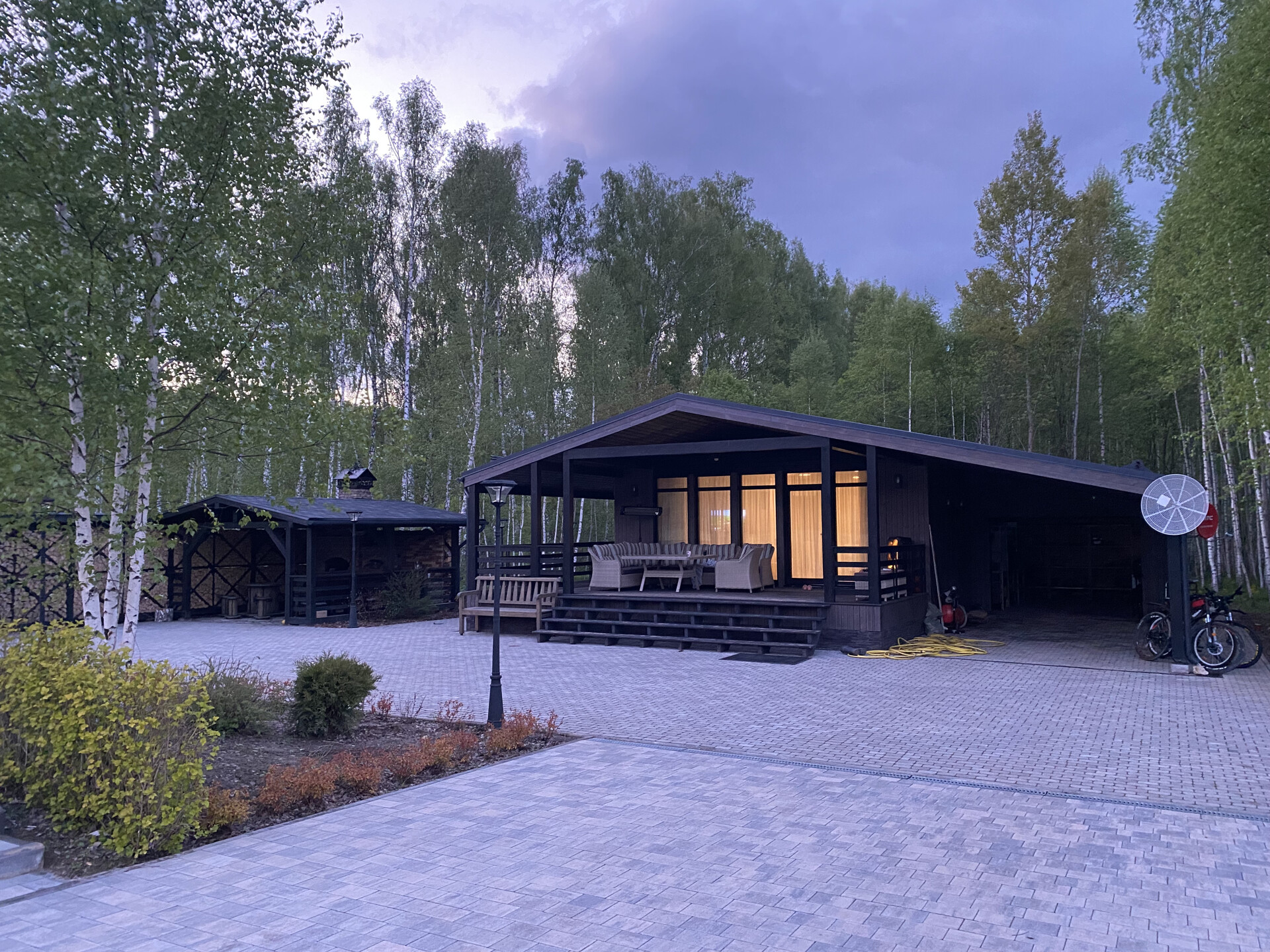 Основной дом для проживания 80 кв м с навесом для авто, гаражом. Парковка на 6 м/м. Беседка барбекю с каменной печью. Летний душ/туалет. В доме сауна.