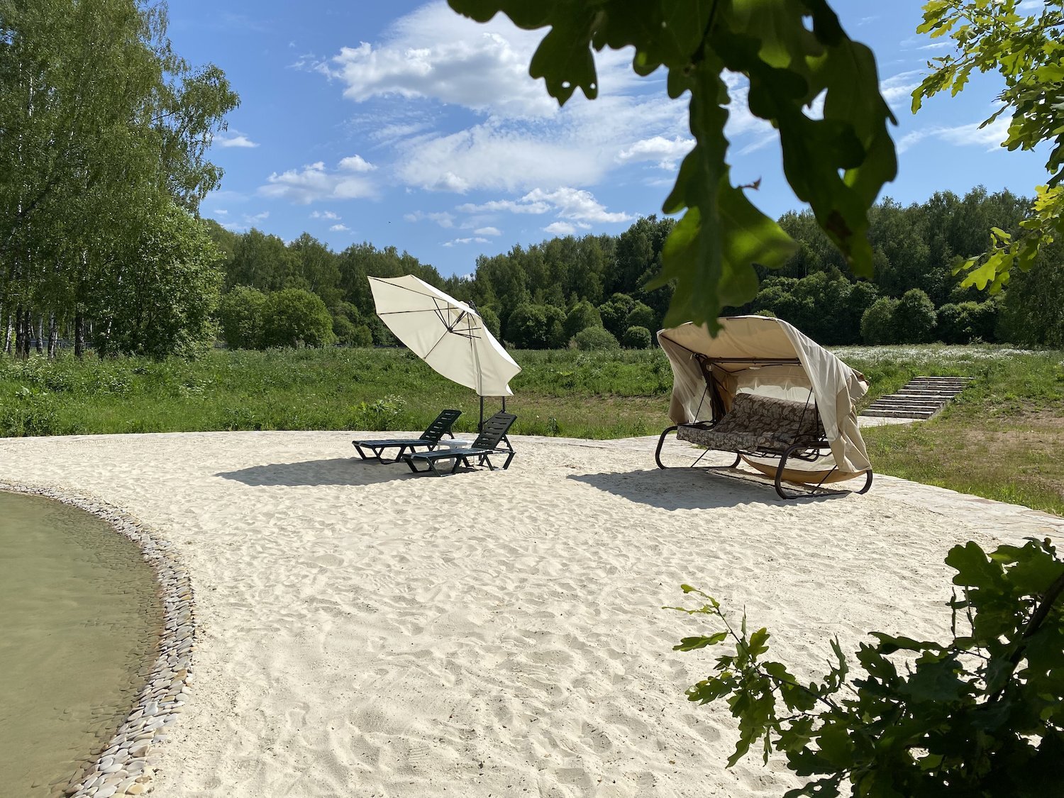 Пруд, пляж, шезлонги, качели (пруд работает с 6.00 до 21.00)
